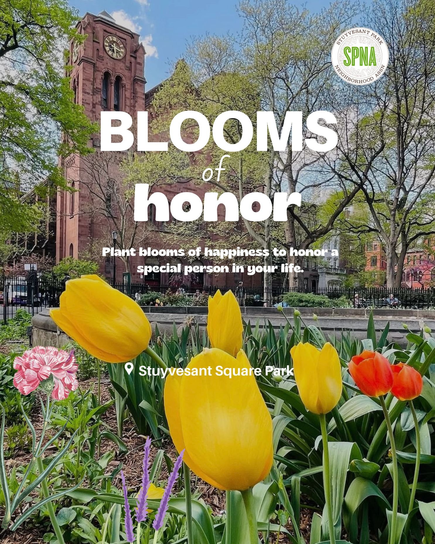 Plant blooms of happiness to honor a special person in your life. This meaningful tribute helps sustain its natural beauty for generations to come. When you make a minimum donation of $50.00, SPNA will plant your flowers in the park.