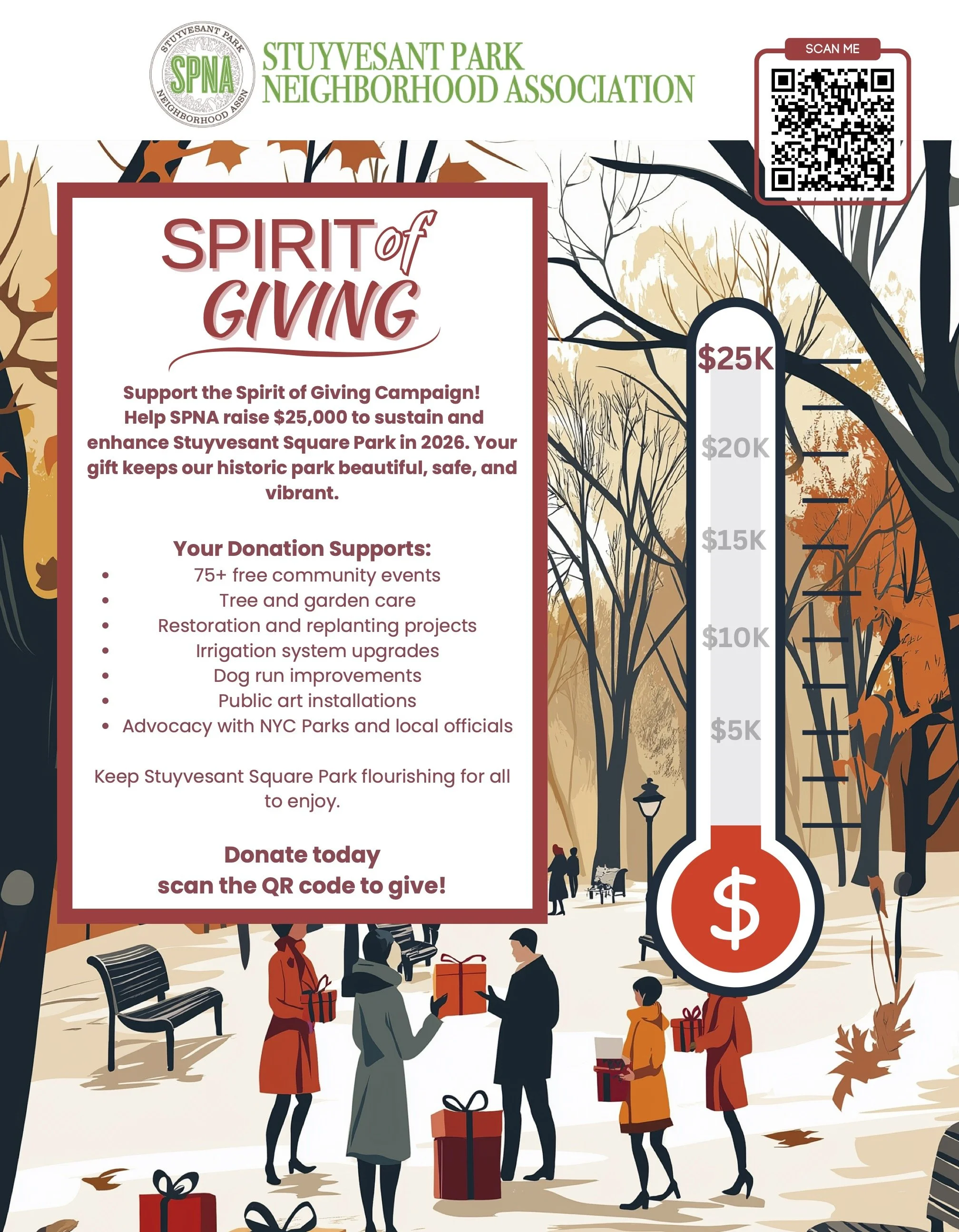 Join SPNA’s Spirit of Giving campaign to raise $25,000 in support of essential projects planned for 2026. Your generosity directly sustains the beauty, safety, and vitality of our historic park.