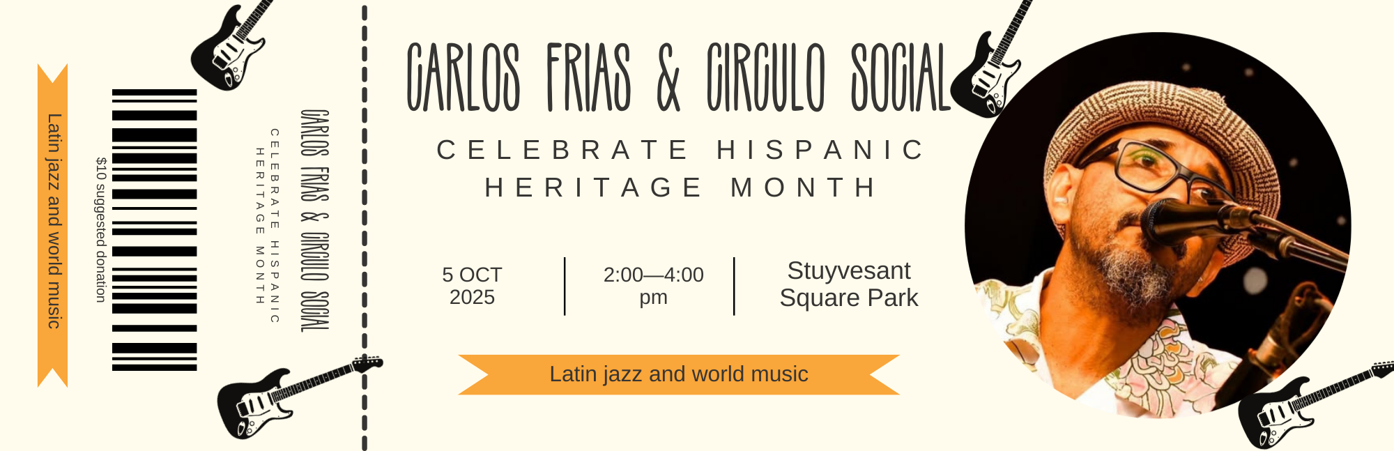 Join us on Sunday, October 5 from 2–4 p.m. as Carlos Frías & Círculo Social bring their vibrant Latin rhythms to Stuyvesant Square Park. Come dance, sing, and celebrate the rich cultural traditions of Hispanic Heritage Month with neighbors and friends—all under the autumn trees. Free and open to all!
